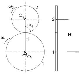 здесь n=3 – число подвижных звеньев (колёса 1 и 2 водило H),