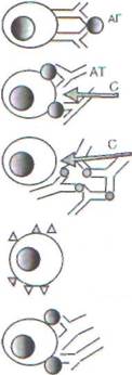 Антитела,циркулирующие в крови. Антиген (первичный или вторичный) фиксирован на поверхности клетки