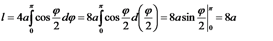 Т.к. кардиоида симметрична относительно поляры OP, то достаточно найти длину кардиоиды при
