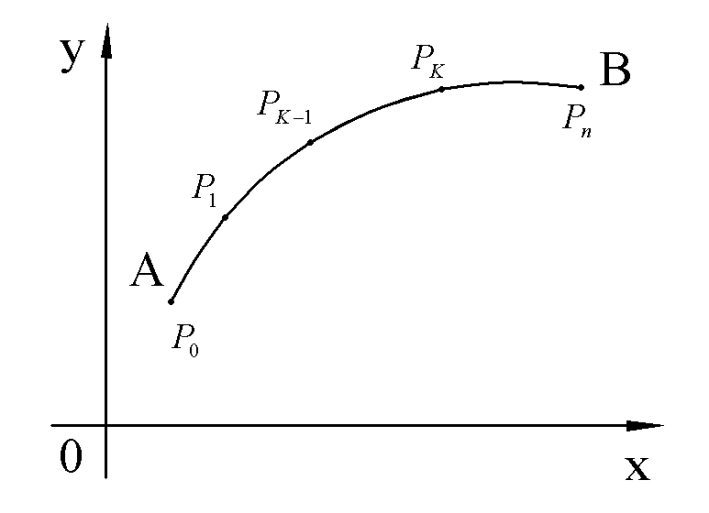 Этому разбиению будет соответствовать некоторое разбиение кривой AB на n частей точками