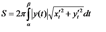 Пример. Вычислить площадь S поверхности, полученной при вращении кривой