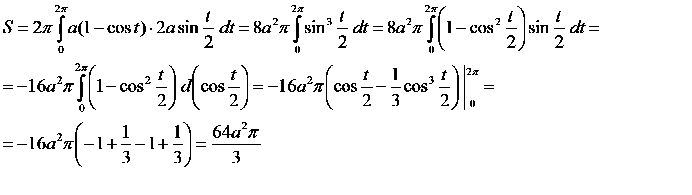 Пример. Вычислить площадь S поверхности, образованной вращением одной арки циклоиды