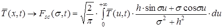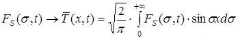 На другому етапі розвязування задачі для знаходження оригіналу Т(x,t) використовуємо зворотне синус-перетворення Фур'є для функції F(s,t):