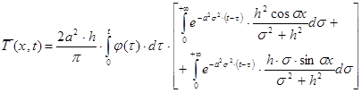 Потрібно, використовуючи метод інтегральних перетворень Фур'є, одержати загальний розв’язок задачі T(x,t).