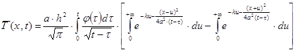 Формула (69) дозволяє розраховувати розподіл температури по глибині оброблюваних виробів, поблизу поверхні яких відбувається конвективний теплообмін з охолоджуючою рідиною.