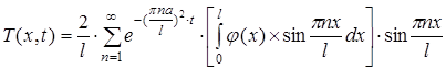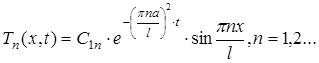 Ми хочемо знайти функцію T(x,t), що є розв’язком задачі (1), (4) – (6). Будемо шукати розв’язок, представлений у вигляді (7). Для цього підставимо вираз (7) у рівняння (1). У результаті підстановки одержуємо