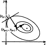 в (4.18) берется либо сразу достаточно малым постоянным, либо предусматривается его уменьшение, например, делением пополам для удовлетворения условию релаксации на очередном шаге. Хотя каждый отдельный шаг градиентного метода при этом, вообще говоря, далек от оптимального, такой процесс по числу вычислений функции может оказаться более эффективным, чем метод наискорейшего спуска.