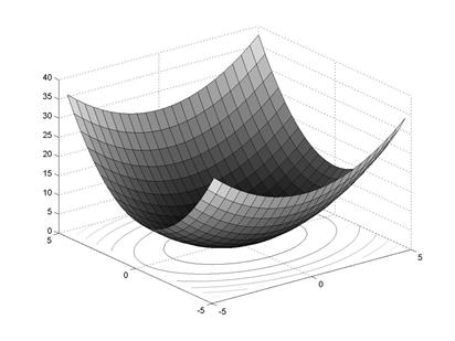 Рис. 4.5. Поверхность и карта линий уровня функции