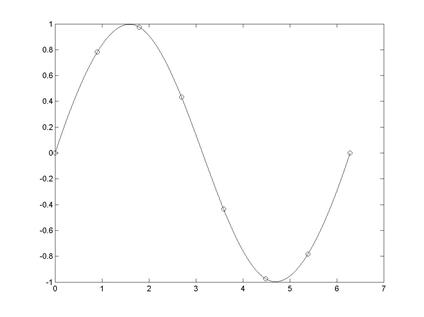 >> Y=sin(X); % вычисление точных значений интерполируемой функции