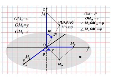 В трёхмерном пространстве помимо прямоугольной декартовой системы координат часто применяются цилиндрическая и сферическая системы координат.