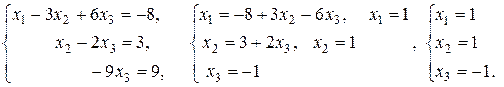 , то говорят, что система свелась к треугольному виду. В этом случае система имеет единственное решение, которое находим, решая систему снизу вверх.