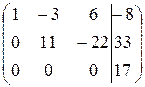 Данная система не совместна, так как последняя строка матрицы соответствует уравнению