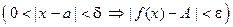 Прочитать эту строчку можно так : для любого положительного ε существует положительное δ такое, что для всякого вещественного х, удовлетворяющего нера- венствам 0 < |x – a | < δ , соответствующее значение функции f (x) удовлетворяет неравенству | f (x) - A | < ε.