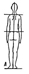 В положении стоя линия плеч должна быть горизонтальной, так же горизонтальной должна быть линия таза, соединяющая точки гребня правой и левой тазовых костей.