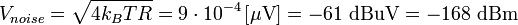 · dBrn — опорное напряжение соответствует тепловому шуму идеального резистора сопротивлением 50Ω при комнатной температуре в полосе 1Гц: