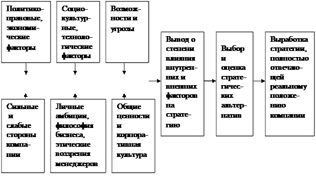 На выбор стратегии компании оказывают влияние многие факторы. Взаимодействие этих факторов носит специфический характер для каждой отрасли и компании и всегда изменяется во времени. Поэтому менеджеру необходимо оценивать всю совокупность внешних и внутренних факторов перед началом выбора стратегии.