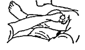 Предупреждение! Не давить локтем на мышцы бедра пациента.