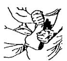 | Техника выполнения приема (рис.60). Произведите массажно-давящее воздействие путем перекатывания голени по поверхности Ваших бедер. Цикл воздействия состоит из движения "от себя" с давлением и "к себе" - без давления. На протяжении верхней и средней третей голени проведите четыре цикла, которые объединяются в один комплекс. Каждый последующий цикл проводится на более дистальном участке голени, для чего руки и левое бедро перемещайте в дистальном направлении. Проведите пять комплексов воздействия. |