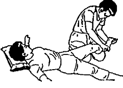 предплечьем в область коленного сустава. Воздействие повторите трижды.