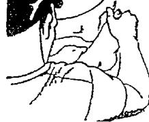 | Исходное положение пациента - лежа на спине. Руки свободно лежат вдоль туловища. Ноги вытянуты и раздвинуты на ширину плеч. Исходное положение врача. Займите исходное положение, сидя на пятках с упором на колени справа от пациента на уровне его голени. Положите правую ногу пациента себе на бедра, захватив голень в верхней и средней трети соответственно правой и левой рукой. Большой палец левой руки положите на ногтевую фалангу правой руки. Техника выполнения приема (рис.61а,61в.). Произведите массажно-давящее воздействие путем ритмичного надавливания большими пальцами, положенными один на другой, по два раза в восьми точках на протяжении от уровня коленного сустава до наружной лодыжки. |