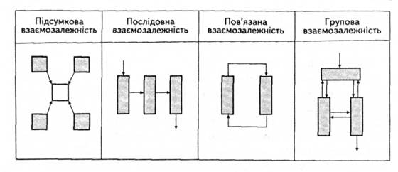 Рис. 2.11 Типи взаємозалежності робіт в організації