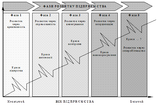 Коротка характеристика визначених фаз розвитку підприємства з позицій управління представлена нижче: