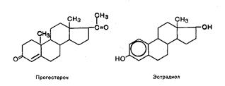 Женские половые гормоны. Основным местом синтеза женских половых гормонов являются яичники и желтое тело; доказано также и образование этих гормонов в надпочечниках, семенниках и плаценте. Женские половые гормоны делятся на две группы: эстрогены и прогестины.