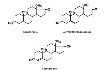 Наиболее активным андрогеном является тестостерон. Другие (андростендиол и андростерон) обладают в 6-10 раз меньшей активностью, а дегидроэпиандростерон, эпитестостерон – в 25-50 раз менее активны, чем тестостерон.
