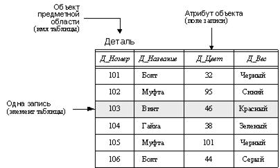 Имя столбца (имя одного и того же поля всех записей) называется атрибутом, а индивидуальные значения, появляющиеся в отдельных записях, – значениями атрибута.