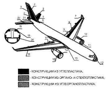 | Рис.3.8. Применение ПКМ в конструкции пассажирского самолета Ту-204 |