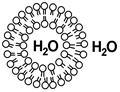 | Гидрофобные хвосты поворачиваются друг к другу, а гидрофильные головки соприкасаются с водными фазами. |