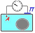 Однако итальянский физик Александро Вольта (Volta A.) [Б12] не согласился с таким объяснением. Он считал, что результаты опыта Гальвани неибходимо трактовать по другому — источником электрического является "гальваническая пара" - железо-медь[Б13] . Схема этого опыта, который Вы воспроизведёте на практических занятиях показан на рисунке.
