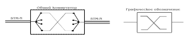 В общем случае приходиться использовать специально разработанные синхронные коммутаторы - SDXC, осуществляющие не только локальную, но и общую или проходную (сквозную) коммутацию высокоскоростных потоков и синхронных транспортных модулей STM-N (рис. 9). Важной особенностью таких коммутаторов является отсутствие блокировки других каналов при коммутации, когда коммутация одних групп TU не накладывает ограничений на процесс обработки других групп TU. Такая коммутация называется неблокирующей.