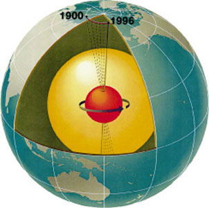 Рис 1.24 Временной дрейф оси магнитного диполя Земли