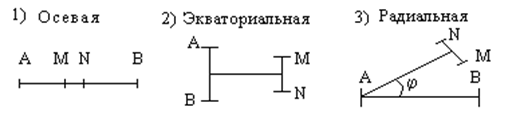 В практике электроразведки наибольшее применение получили осевые, экваториальные и радиальные электроразведочные установки (рис. 2.12).
