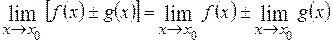 Предел суммы (разности) двух функций равен сумме (разности) их пределов: