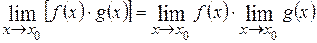 Предел произведения двух функций равен произведению их пределов:
