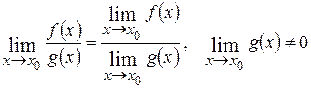 Предел частного равен частному пределов, если предел знаменателя отличен от нуля: