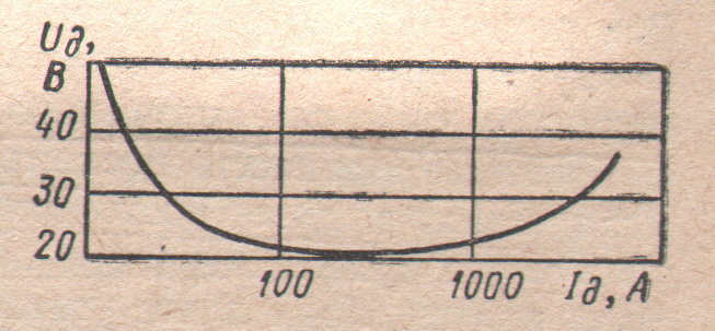 Рис. 3. Вольтамперная характеристика дуги при ручной дуговой сварке