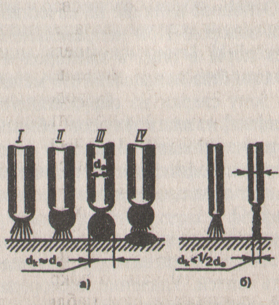 В зависимости от размера и скорости образования капель различают капельный или струйный перенос.