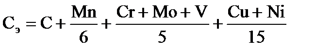 Чем выше содержание углерода в стали, тем выше опасность образования холодных и горячих трещин. Ориентировочным количественным показателем свариваемости стали является эквивалентное содержание углерода, которое определяется по формуле Сефериана [1]