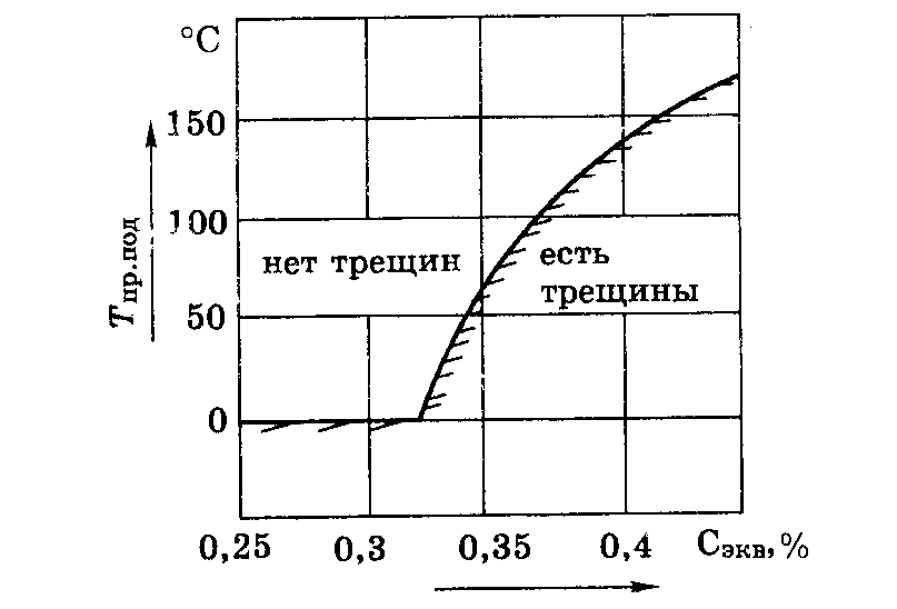 Температура предварительного подогрева в этом случае определяется по графику (рис.1).
