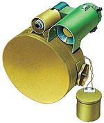 - установить ОДЦ на мину, вставив стержень во втулку корпуса мины со стороны очка, выступ на стержне ОДЦ должен войти в паз втулки, а подвижная шайба на торце стержня должна спуститься за срез втулки;