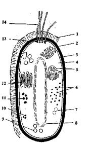 Деление живых организмов на прокариоты и эукариоты базируется прежде всего на особенностях строения их ядерного аппарата. С помощью электронного микроскопа было установлено отсутствие у бактерий истинного ядра, поэтому их назвали прокариотами, то есть «доядерными» организмами. Известно, что основой ядерного аппарата является дезоксирибонуклеиновая кислота (ДНК), молекула которой имеет вид двойной спирально закрученной нити. Ядерный аппарат прокариот включает молекулу ДНК в виде замкнутой в кольцо нити, расположенную непосредственно в цитоплазме.