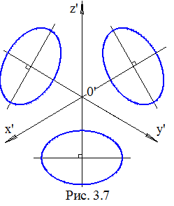 У прямокутній ізометрії рівні кола, розташовані в різних координатних площинах, проекціюються в рівні еліпси (рис. 3.7). Розміри їхніх осей при використанні наведених коефіцієнтів спотворення: більша вісь дорівнює 1,22d, мала – 0,71d, де d – діаметр зображуваного кола.