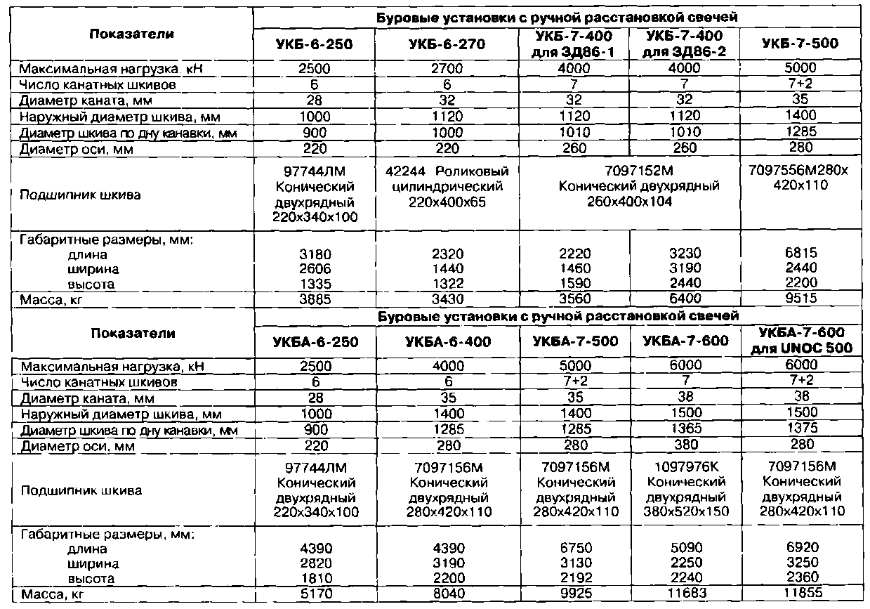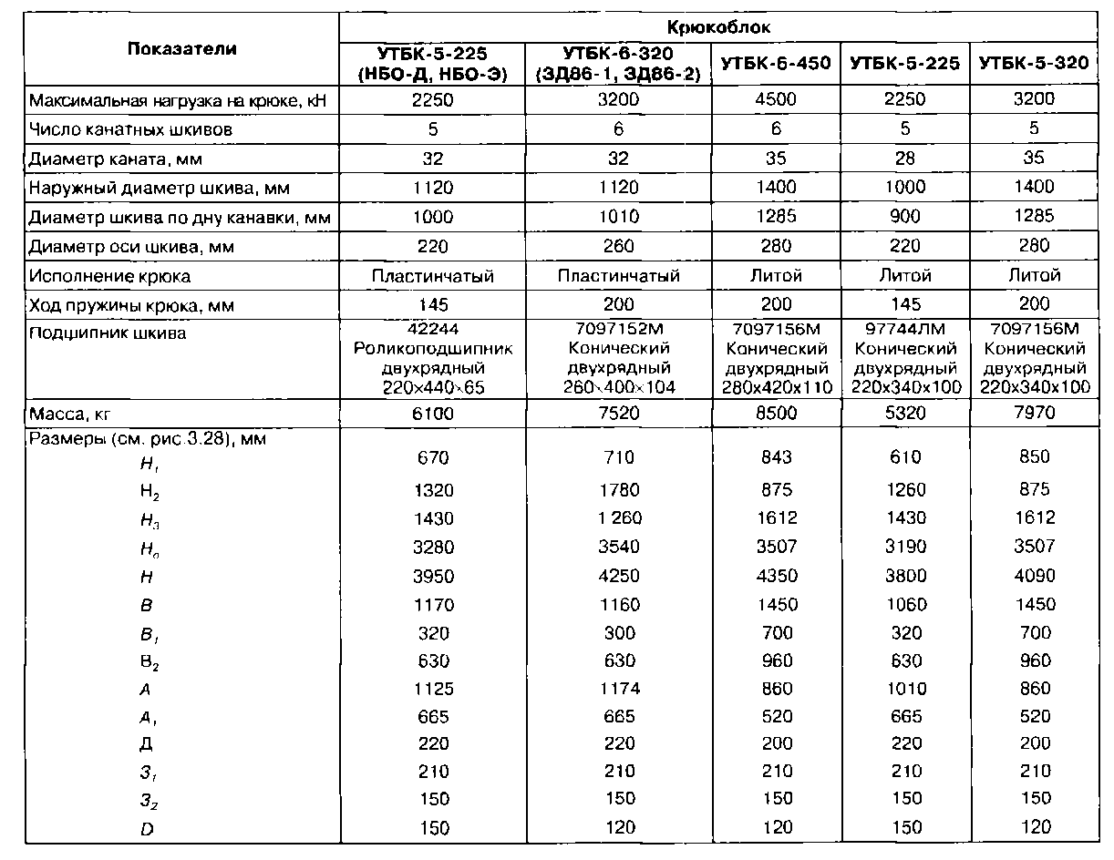 Талевые блоки, в зависимости от грузоподъемности и диаметра каната, имеют разное количество шкивов или разные их диаметры (табл. 3.2.7).