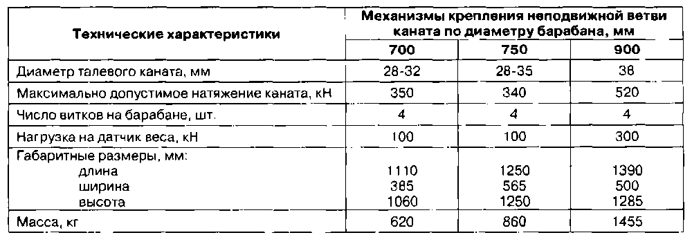 Таблица 5.4 – Техническая характеристика устройств для крепления неподвижной ветви талевого каната