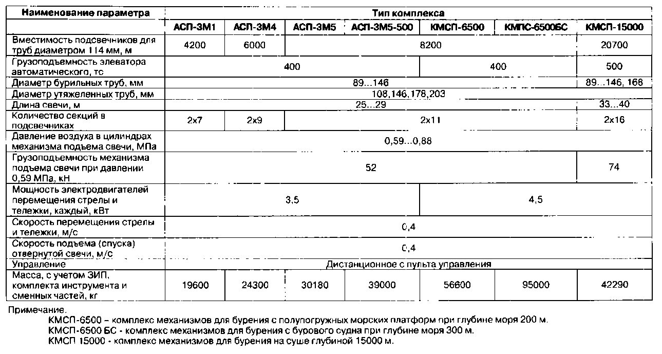 В соответствии с требованиями Правил безопасности в нефтяной и газовой промышленности, п. 2.4.1, для бурения скважин глубиной свыше 4000 м БУ должны оснащаться комплексами АСП (КМСП). Ряд буровых установок ОМЗ для глубокого, сверхглубокого, а также для бурения на морском шельфе оснащаются комплексами механизмов типа АСП и КМСП для проведения СПО.