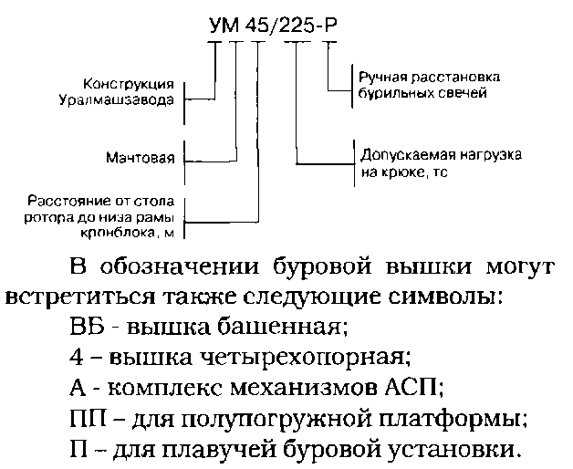 Грузоподъемность вышки (допускаемая нагрузка на крюке) - ее главный параметр, это также основной параметр общей характеристики буровой установки. По этому параметру классифицируются как БУ, так и вышки.