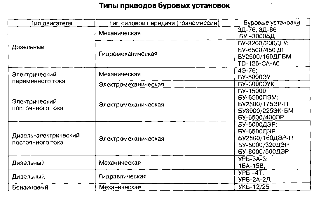 По конструкции силовых передач различают механические, гидротехнические, электрические и комбинированные передачи энергии исполнительным органам. Распределение существующих буровых установок по типам приводов приведено в табл. 12.1.